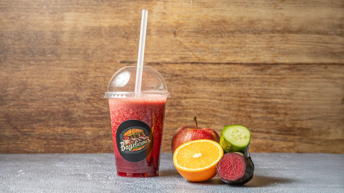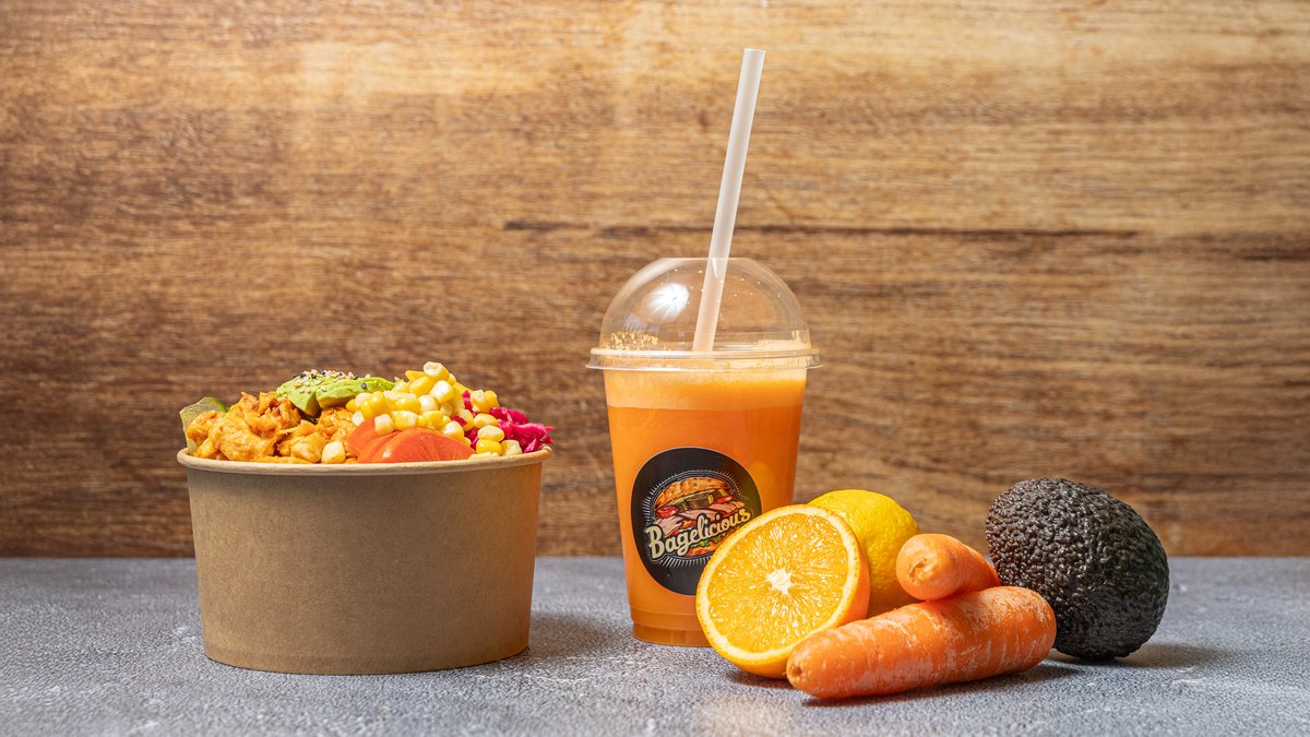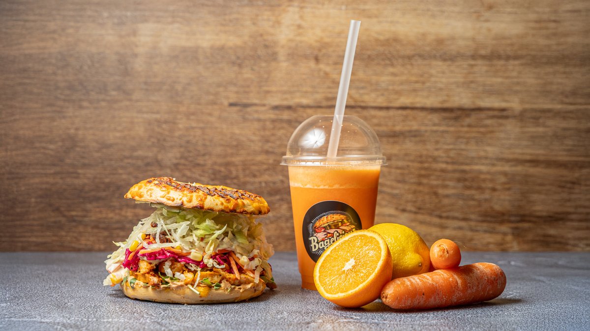 Bagel + 100% natural Carrots, Orange & Lemon drink size M (400ml)