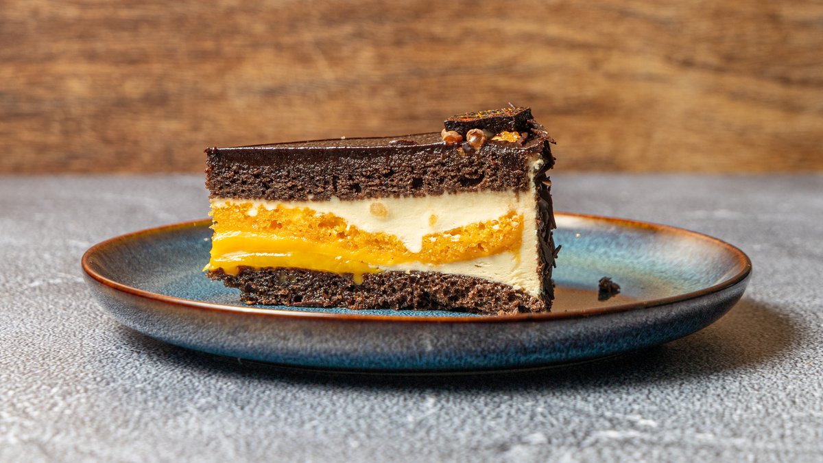 Indulge in a 100gr slice of Chokolade & Appelsin Kage, a delectable chocolate cake infused with a hint of zesty orange.