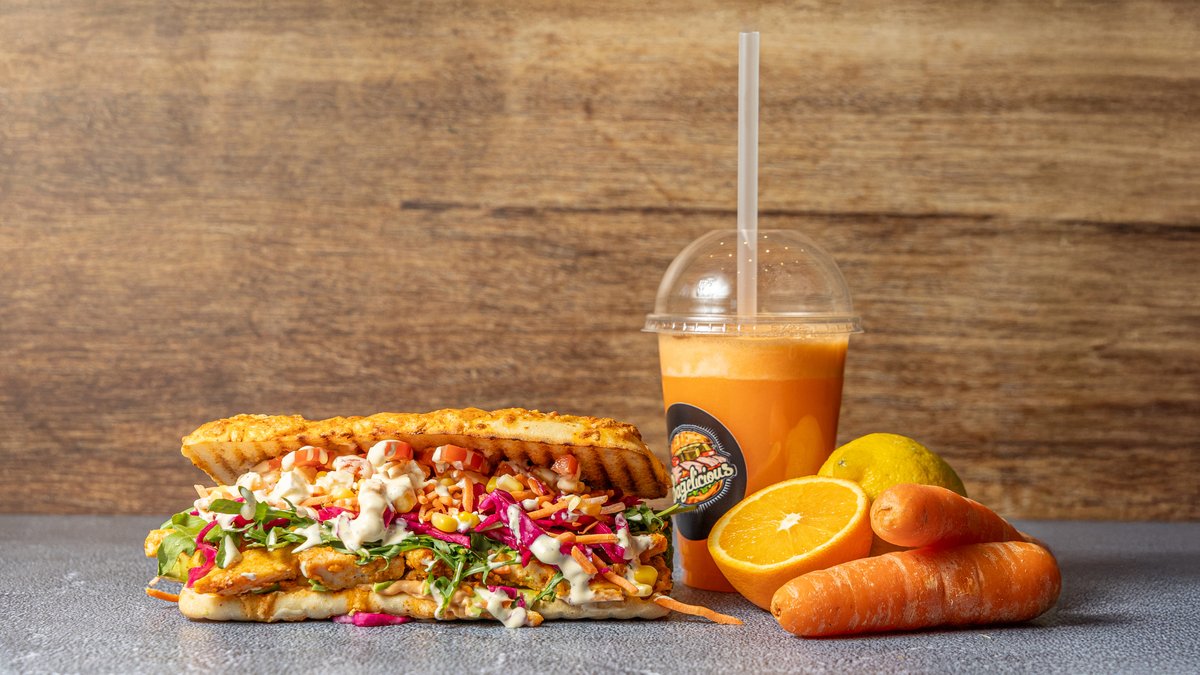 Baguette + 100% natural Carrots, Orange & Lemon drink size M (400ml)