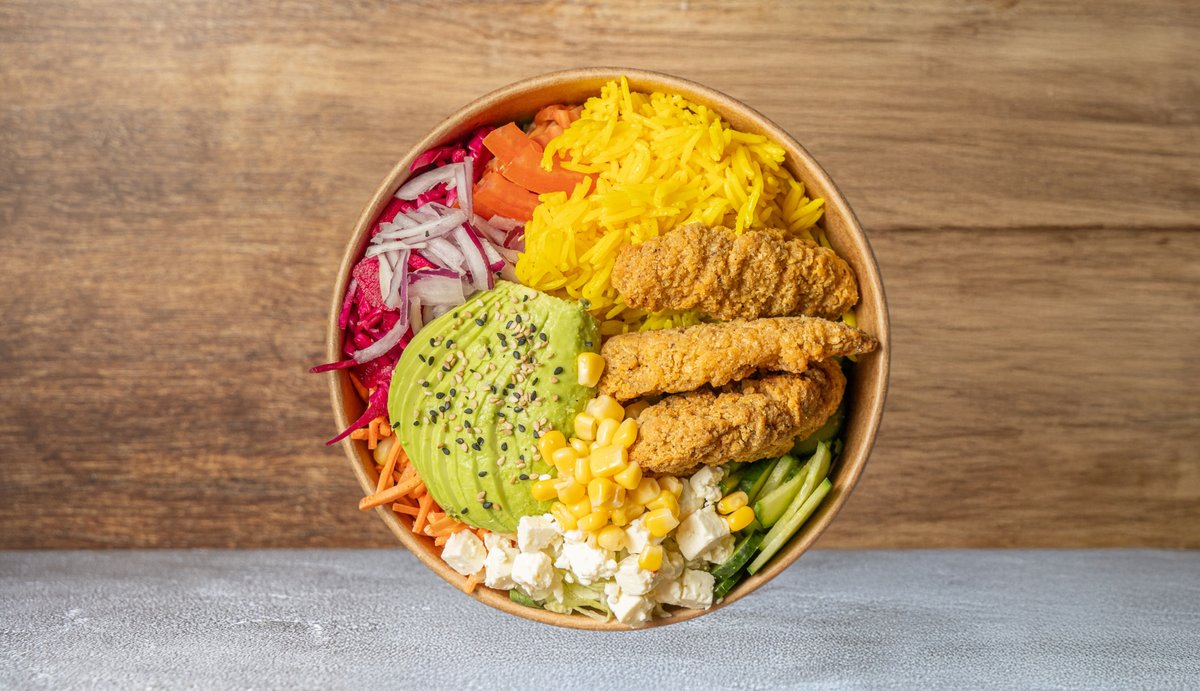 choose from a variety of pastas or rice, premium proteins, fresh toppings & delicious dressings