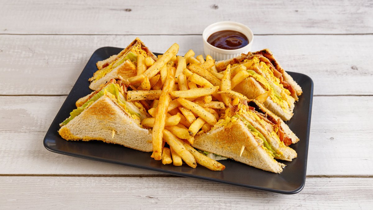 With scrambled eggs, bacon, cheddar cheese, baby spinach and aioli sauce