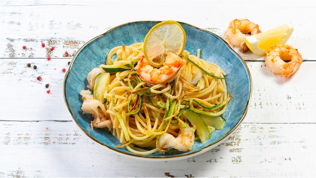 Spaghetti con zucchine e gamberoni