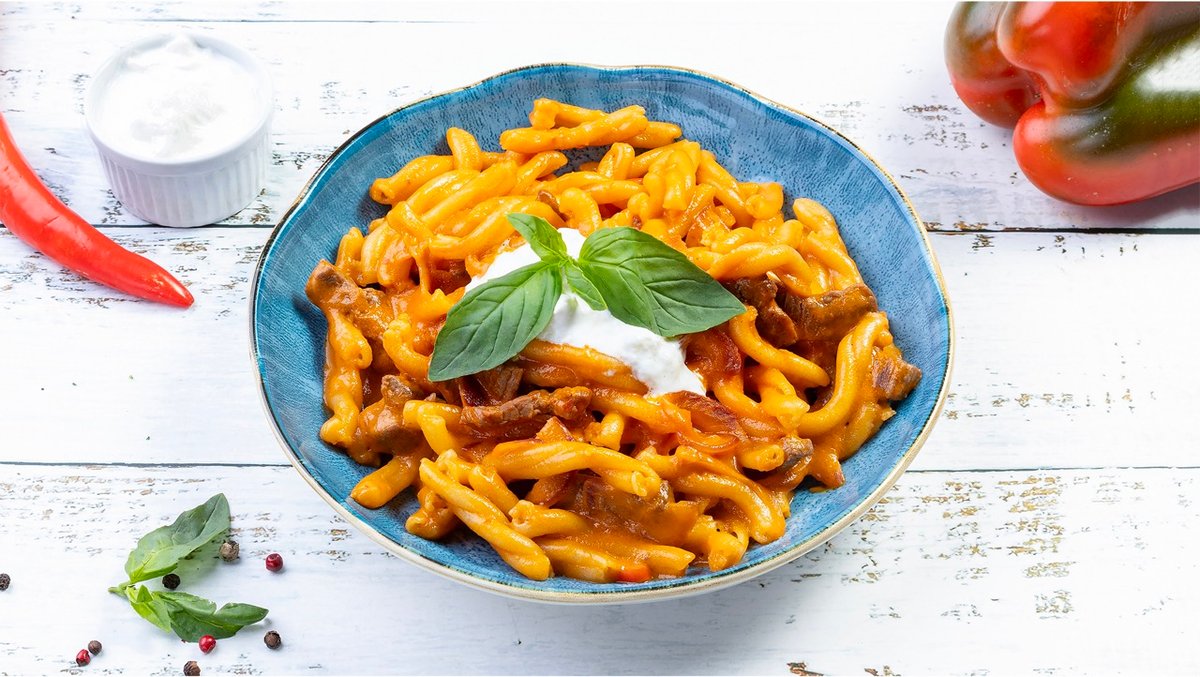 Caserecce con crema di peperoni e manzo