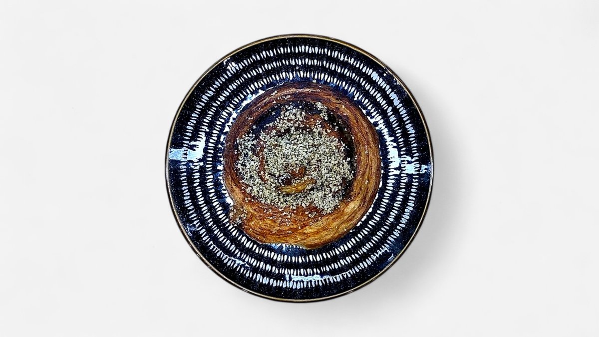 Francia vajjal, helyben készített levelestésztát gyűrűben sütjük ki majd pisztáciás krémmel töltjük meg