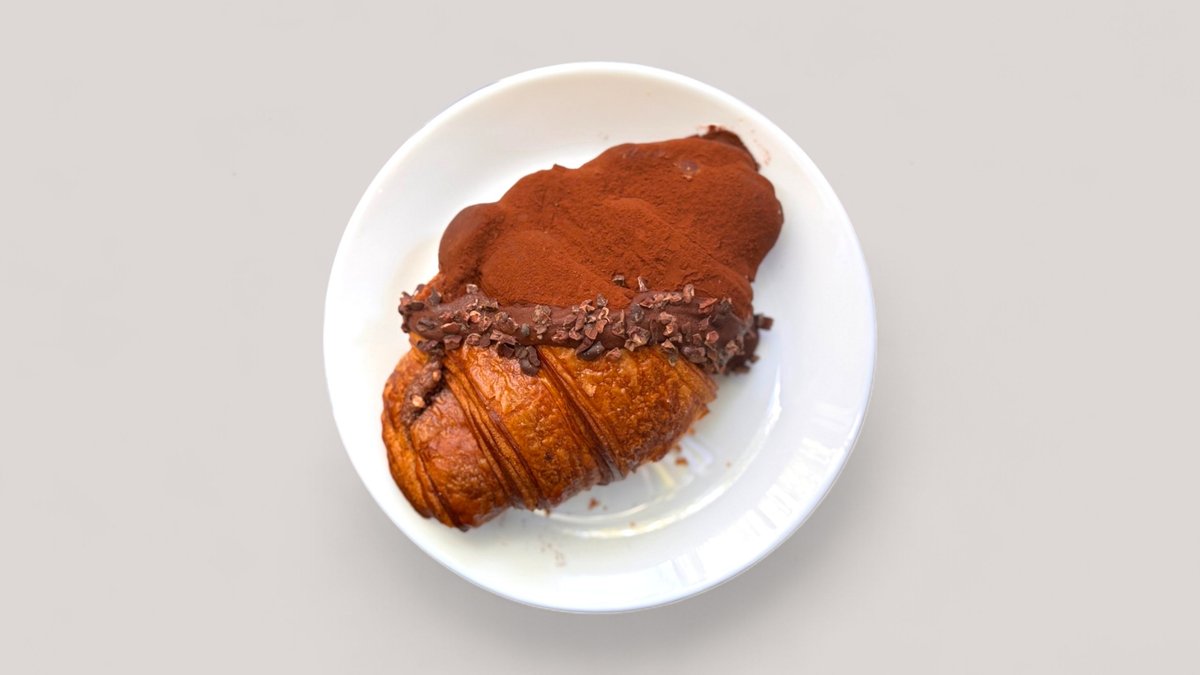 Helyben készült francia leveles tésztából készült lassú érlelésű csokis péksütemény.
