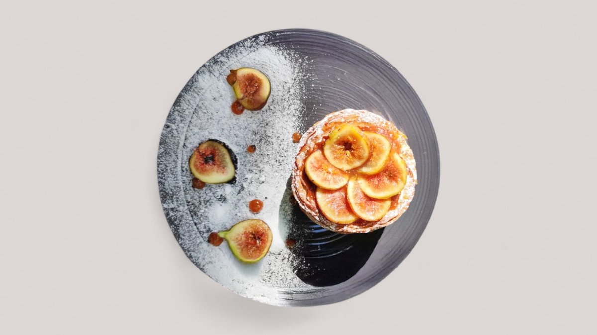 Fügelekvárral, vaníliás krémmel töltött leveles kosár friss fügével díszítve. Allergén: glutén, tejtermék, tojás
