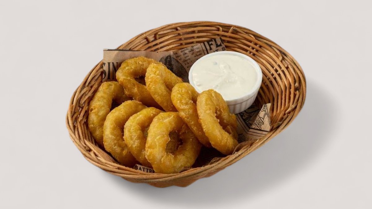 Kalmāru gredzeni ar ķiploku zaļumu mērci