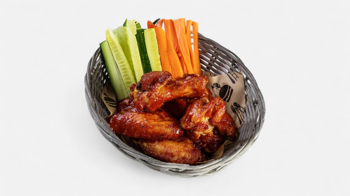 Pikantie vistu spārniņi bbq mērcē ar svaigiem burkāniem un gurķiem 🌶️