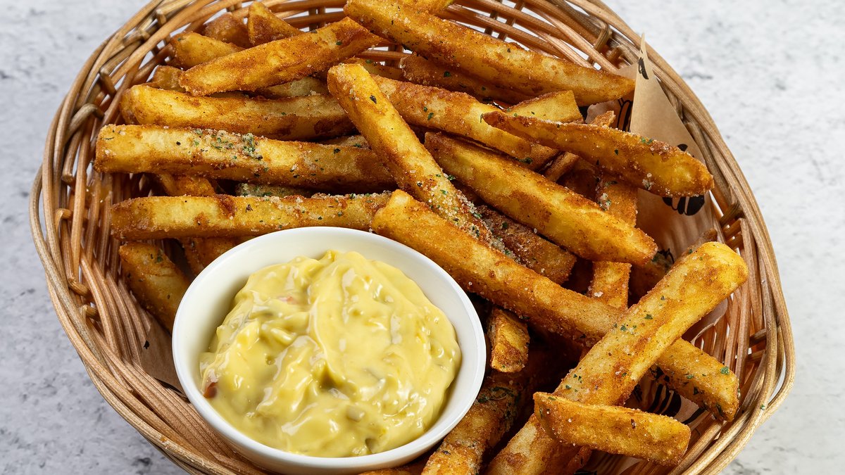 Saldo kartupeļu frī ar cieto sieru un medus-sinepju majonēzi 🥕