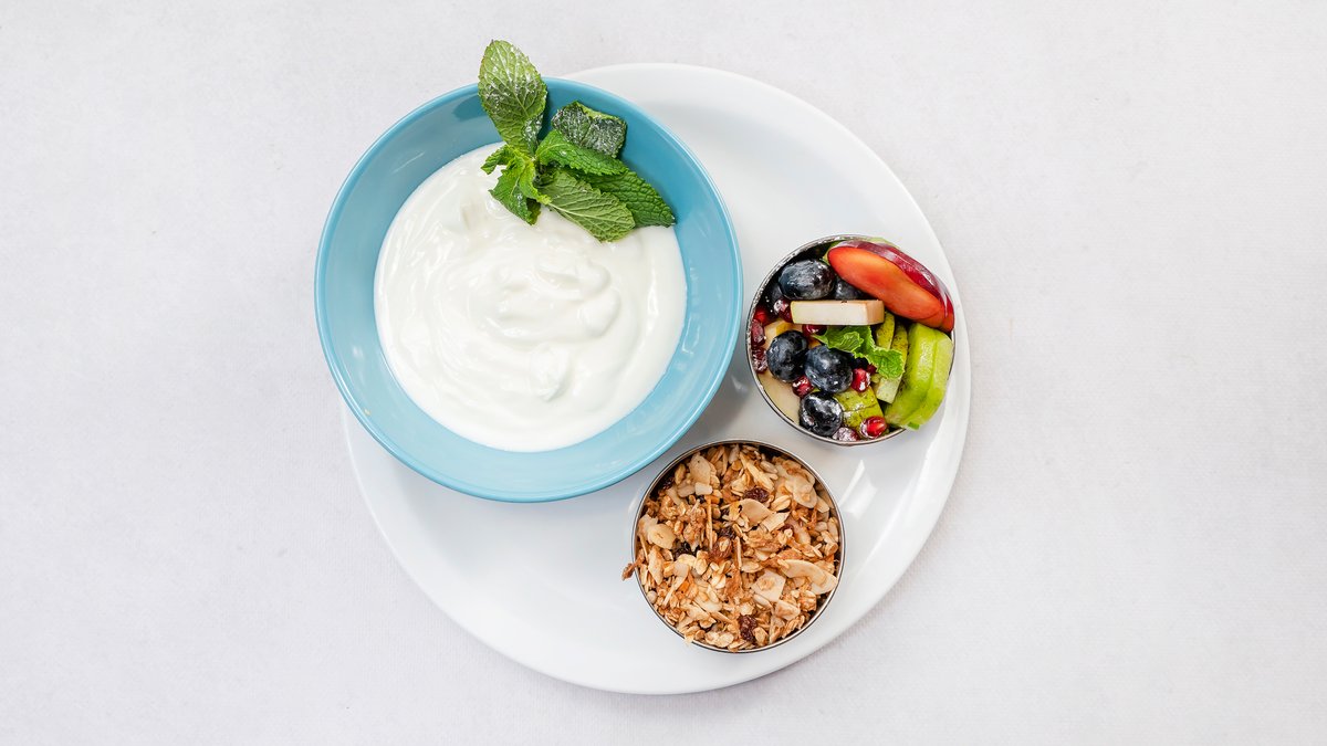 5 szt. Podawane z jogurtem naturalnym, owocami sezonowymi i konfiturą owocową
