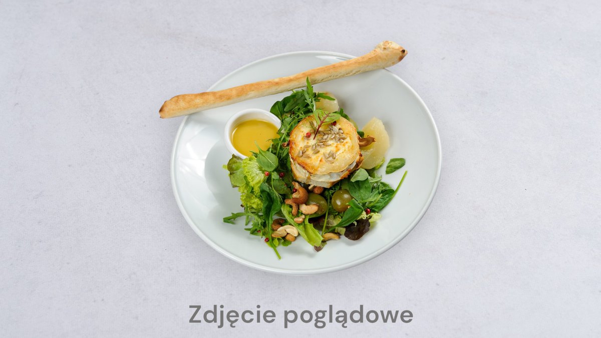Wiosenny bukiet, ser kozi, marynowane buraki, karczochy, crunch, majonez z pestkami dyni, 3 x grzanki