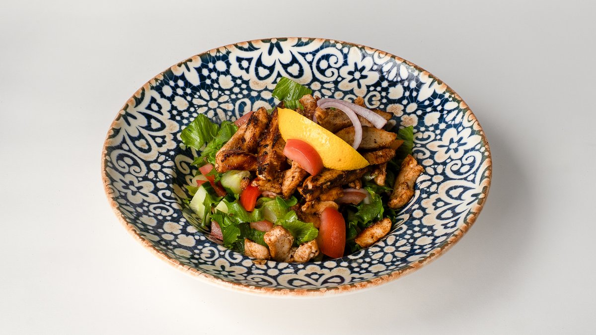 Annoksiin kuuluu talon tuoreleipä, tzatziki tai talon valkosipulimaustevoi.