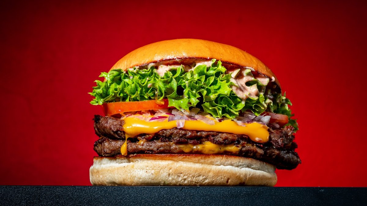 The big, the mighty, Wolt's own exclusive burger! 🔥 Brioche bun, 2 beef patties, 2 American cheese slices, onions, sliced tomatoes, brother sauce and butterhead lettuce