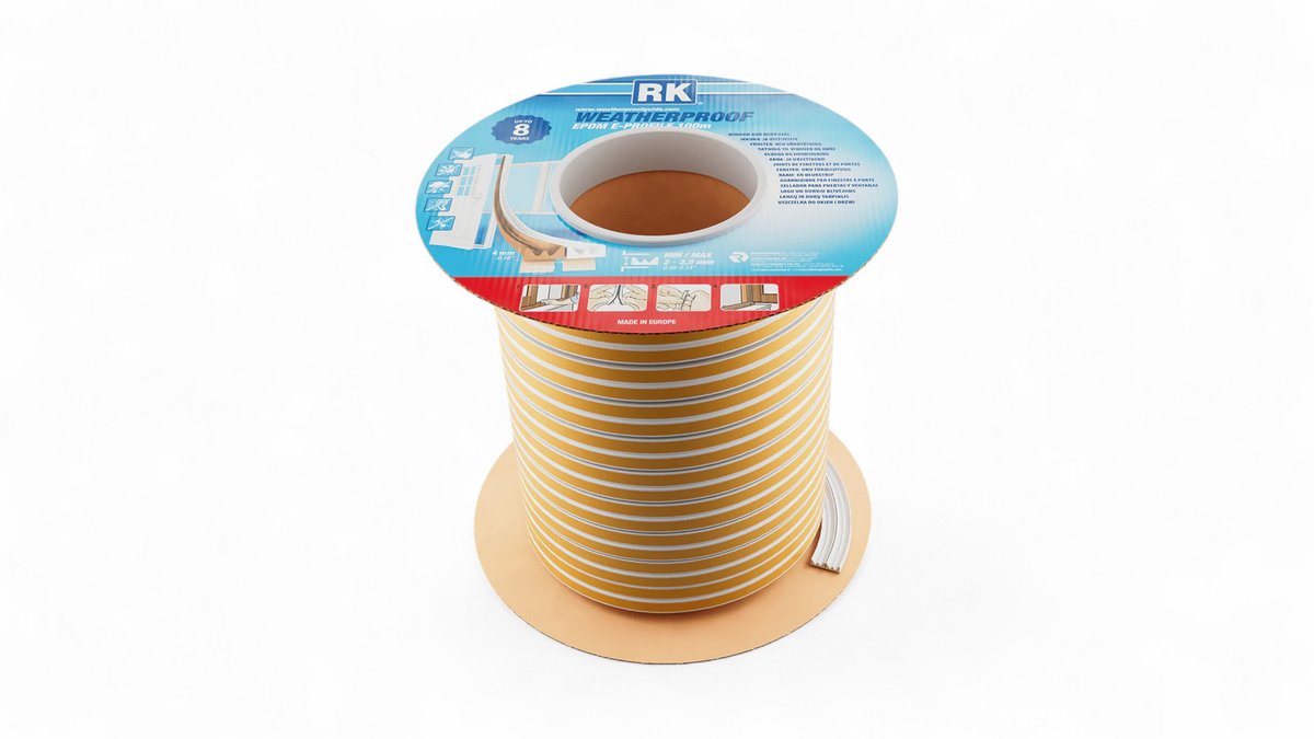 RK Ikkuna- ja ovitiiviste EPDM E-profiili 100 m Valkoinen