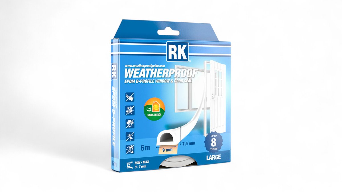 RK Ikkuna- ja ovitiiviste EPDM D-profiili 6 m Valkoinen