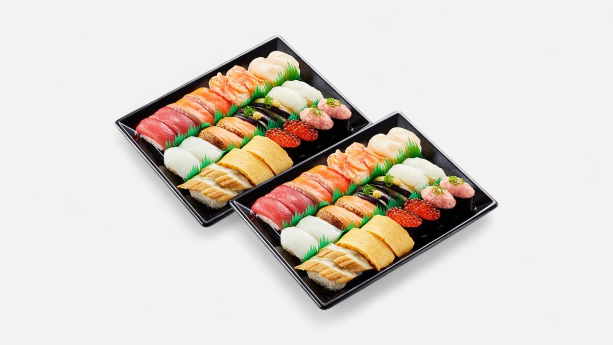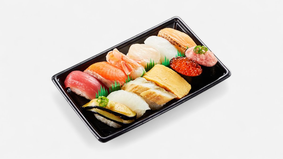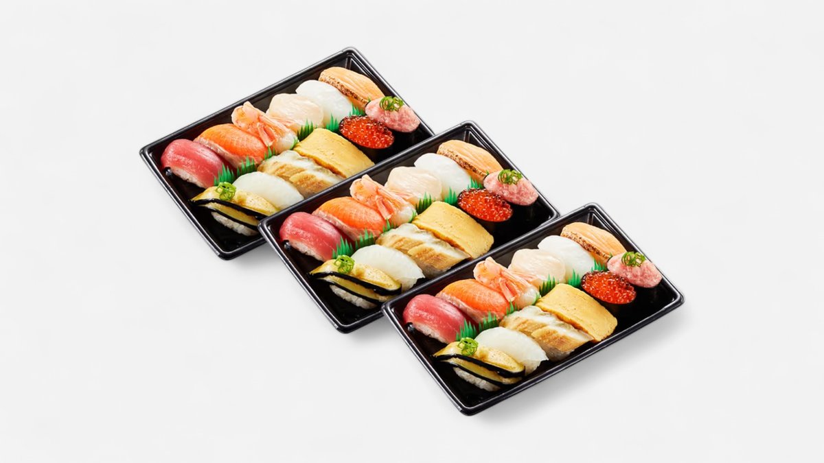 🔸1人前3個でお届け 【商品内容】 中とろ3、まぐろ3、サーモン3、活〆はまち3、えんがわ3、ほたて3、えび3、いか3、煮穴子3、いくら3、特盛ねぎとろ3 ※国産米を使用しております。 【注意事項】 「わさび抜き」でご提供しています。別添のわさびをつけてお召し上がりください。