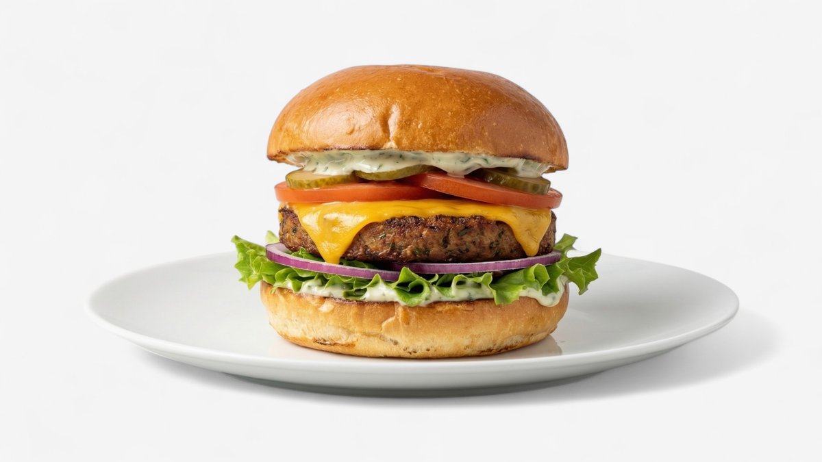 100g täyslihapihvi, sinappi, ketsuppi, cheddarjuustoa,kurkkusalaatti,sipuli, salaatti, amerikankastike