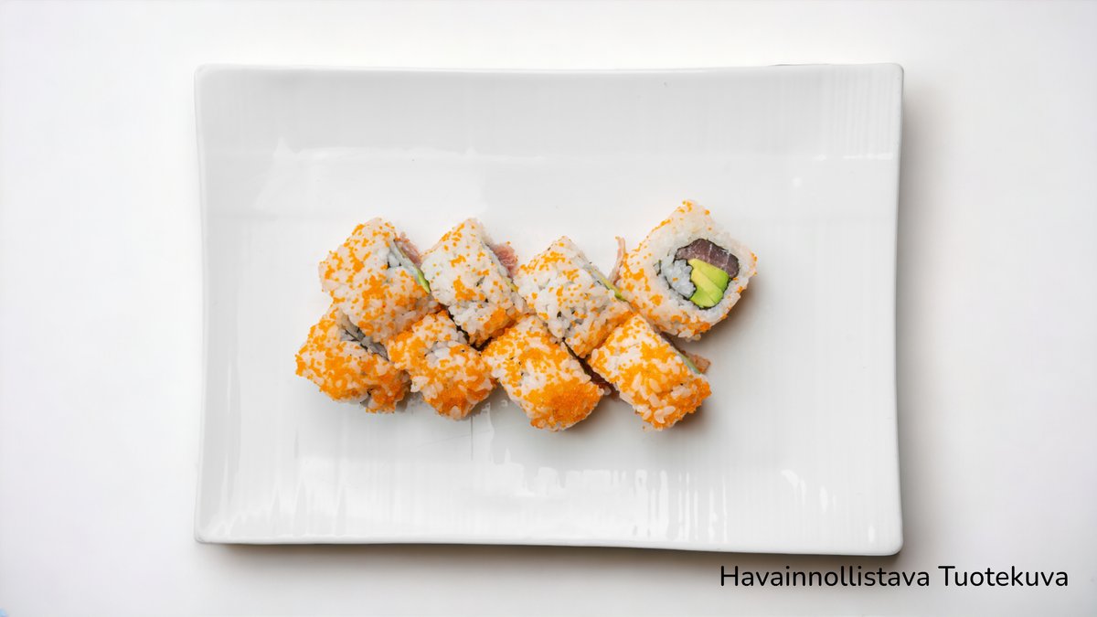 sis:Kurkku,Avokado,Porkkana,Punasipuli,Ituja,sushiriisi,5KPL Tempurakatkarapu, Makea chilikastike