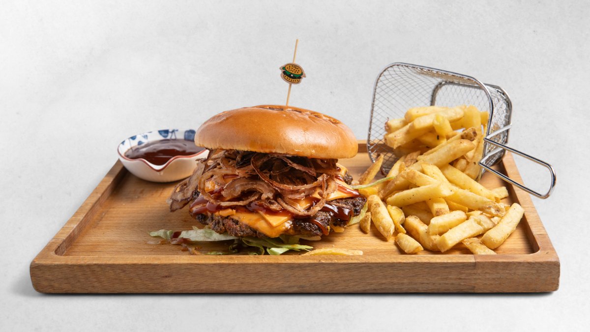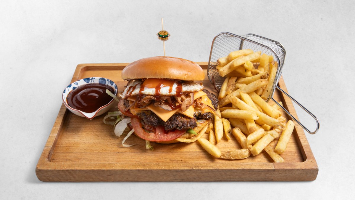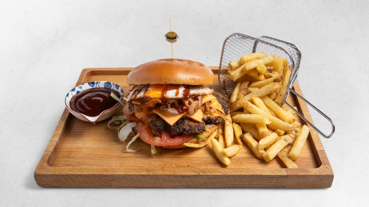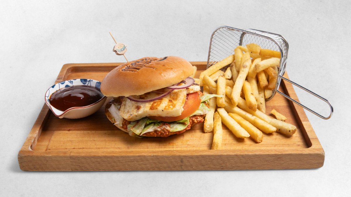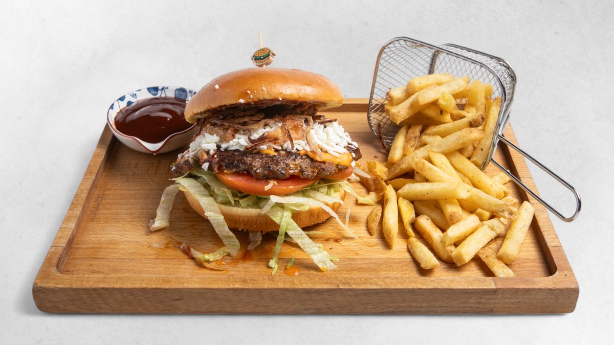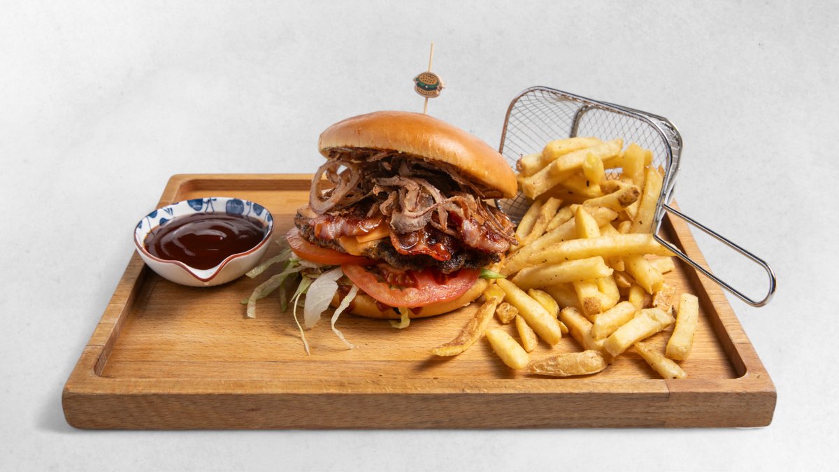 Alle Burger werden mit Pommes frites und Ketchup serviert