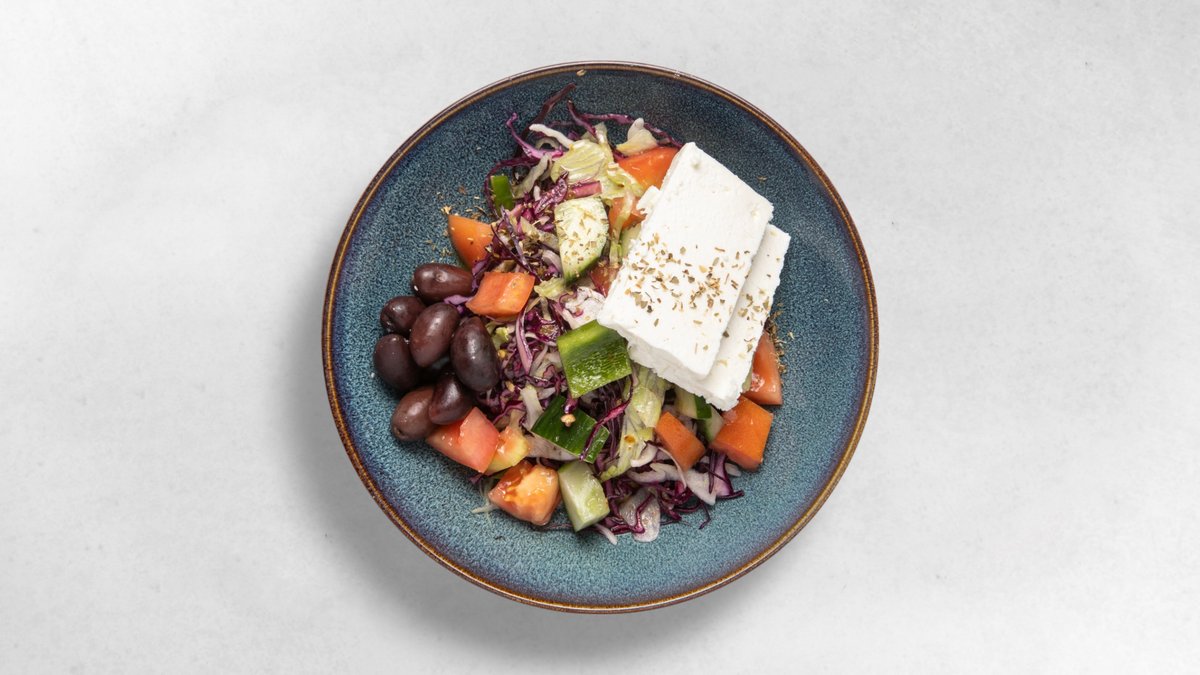 Tomaten, Gurken, Paprika, Zwiebeln, Oliven, Feta