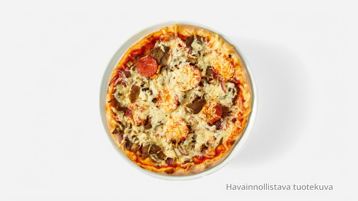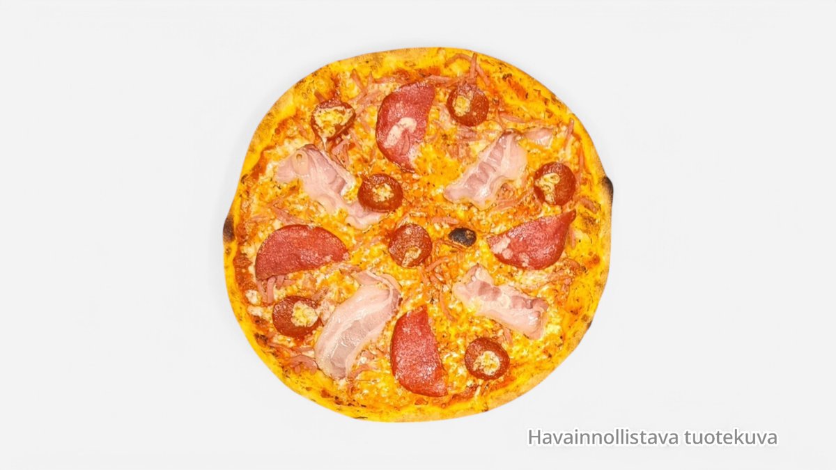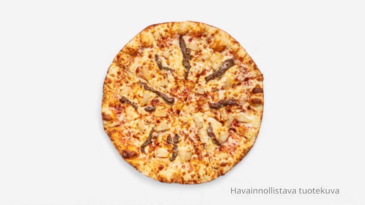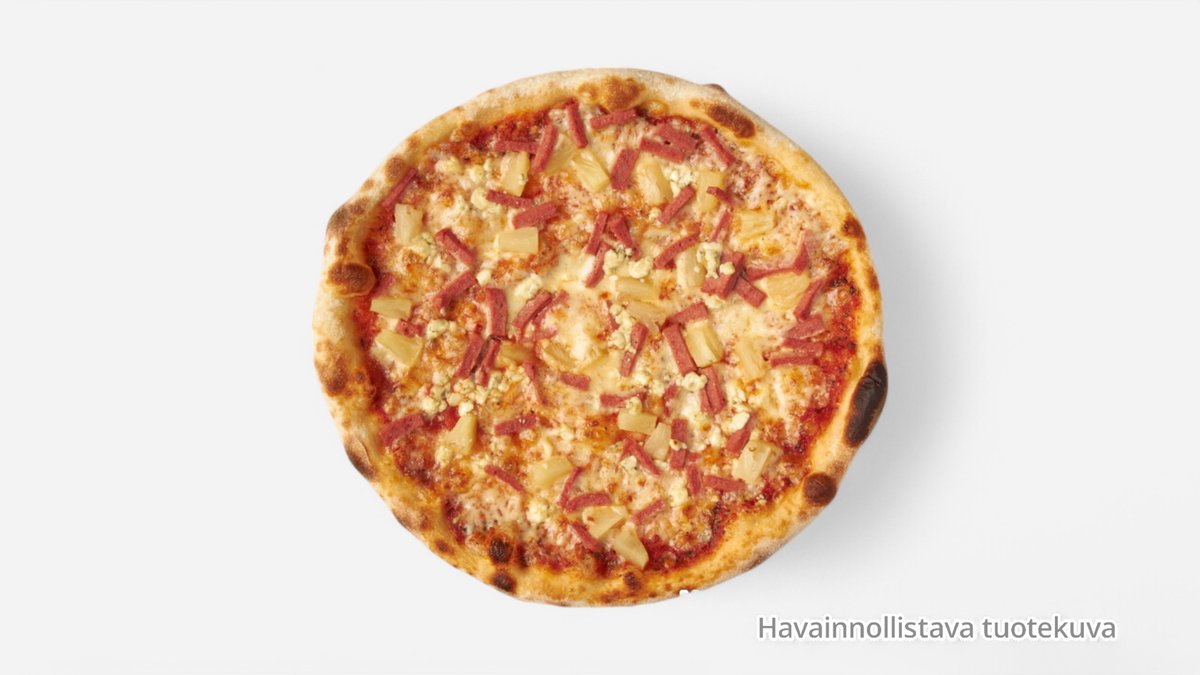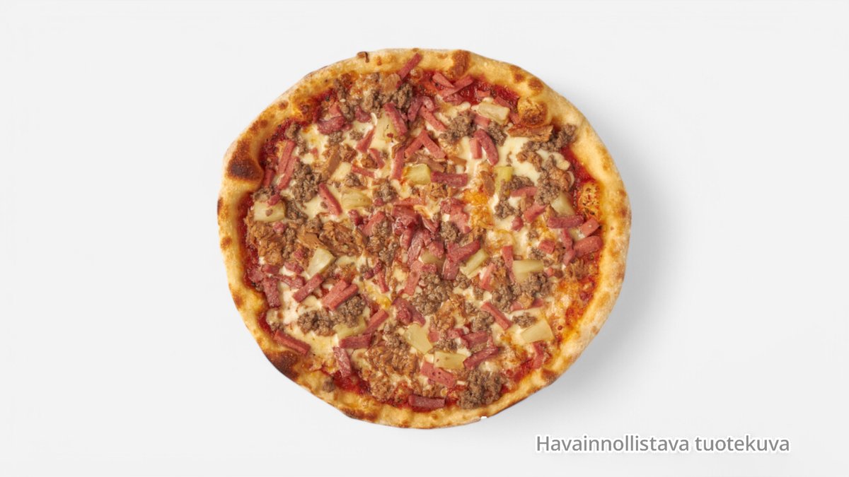 Kinkku, salami, pekoni, jauheliha, sipuli, ananas