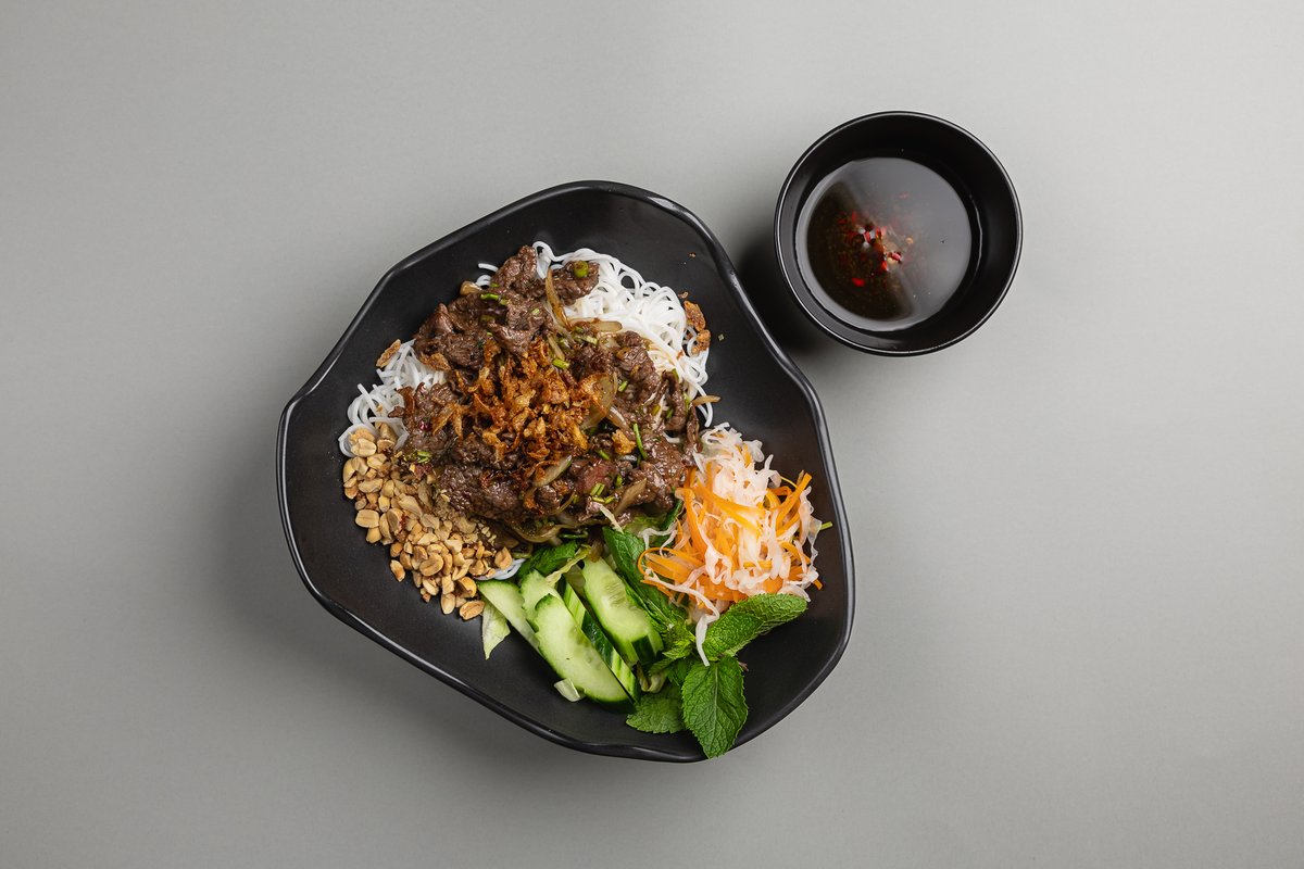 Your choice of protein stir-fried, rice vermicelli, pickles, peanuts, dried onion, salad and herbs. Nước Chấm sauce.