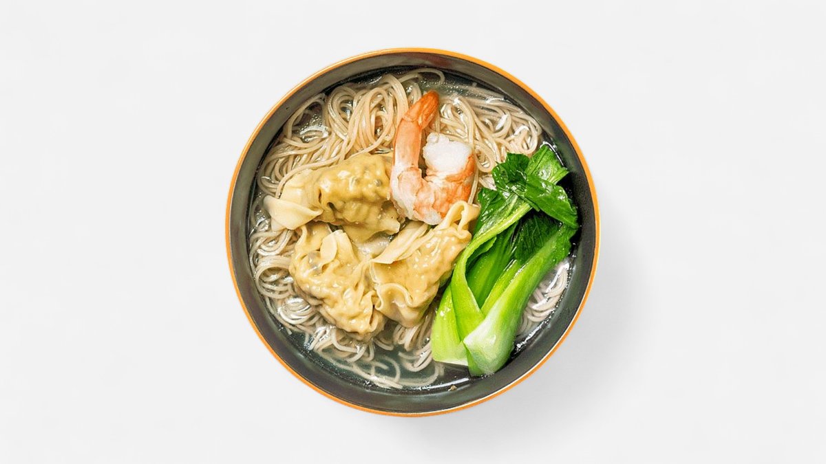 Handmade meat dumplings, flavorful broth, egg noodles, shrimp, and vegetables.