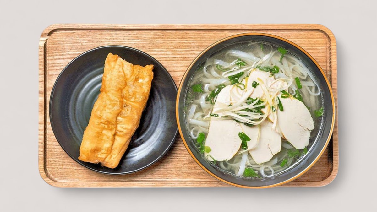Slow-simmered broth with wide rice noodles, your choice of protein, spring onions, and fresh herbs.