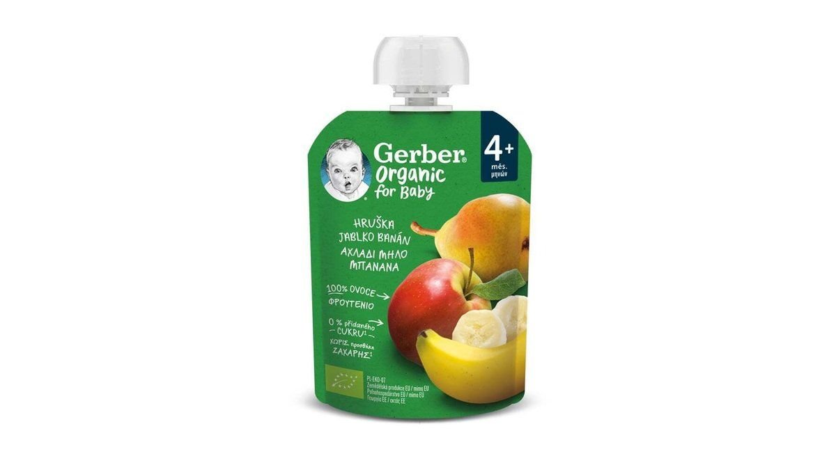 Gerber Organic For Baby 4m+ Φρουτοπουρές Αχλάδι Μήλο & Μπανάνα 90g