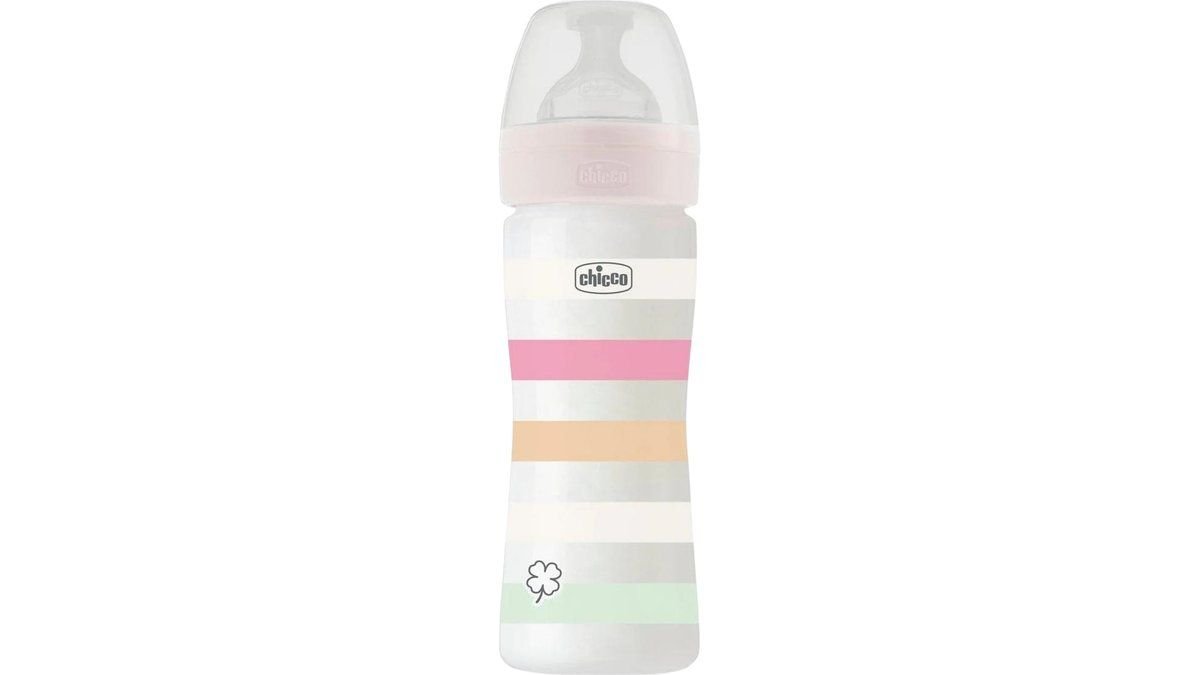 CHICCO Μπιμπερό Γυάλινο Well Being Anti-Colic 0m+ Ροζ 240ml