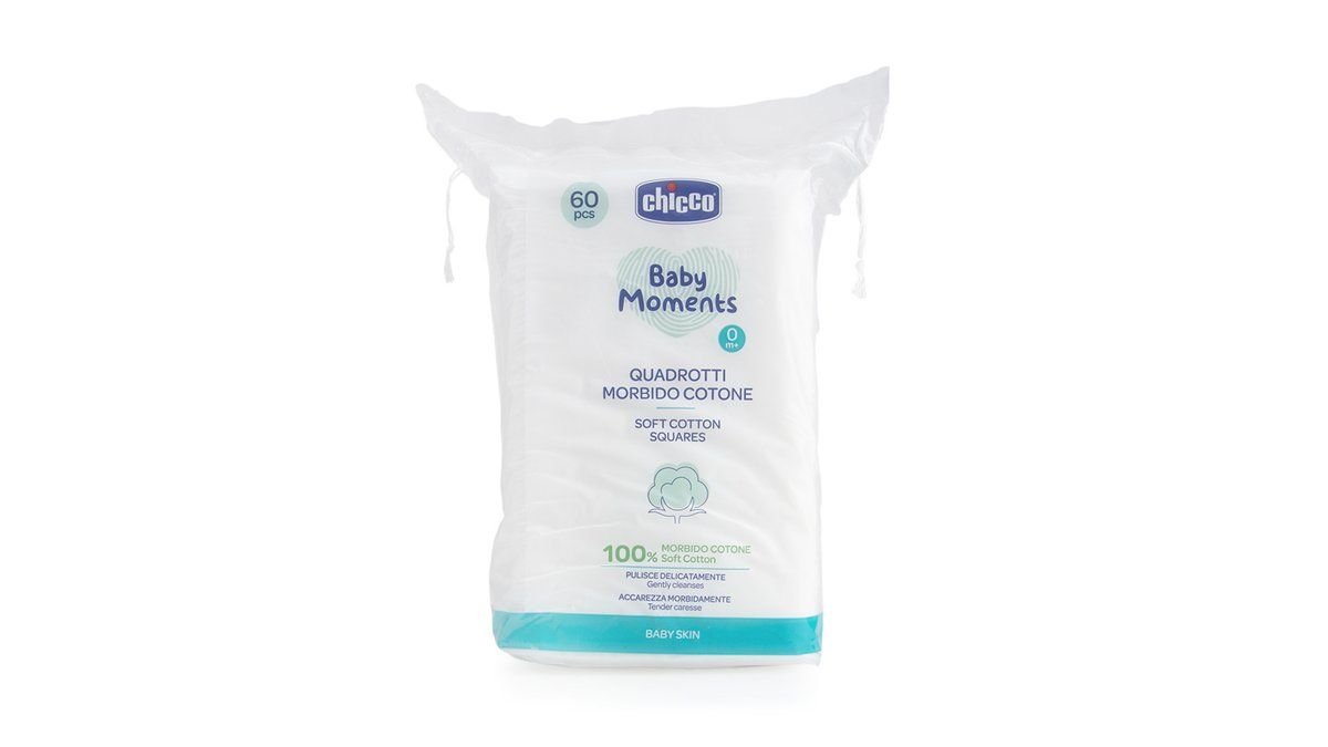 Chicco Baby Moments Μαντηλάκια Καθαρισμού από 100% Απαλό Καθαρό Βαμβάκι 60 τμχ