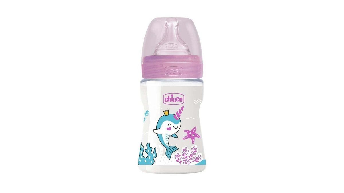 Chicco Well Being Πλαστικό Μπιμπερό Θηλή Σιλικόνης 0M+ (Ροζ) 150 ml