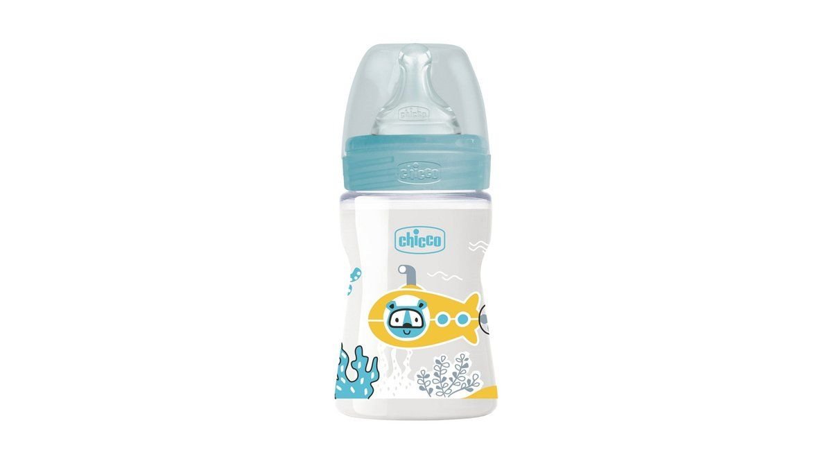 Chicco Well Being Πλαστικό Μπιμπερό Θηλή Σιλικόνης 0M+ (Μπλε) 150 ml
