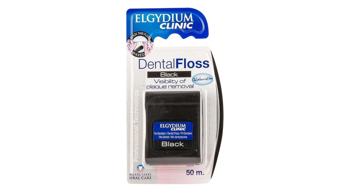Elgydium Dental Floss Black Οδοντικό Νήμα με Μαύρο Χρώμα Ελαφρά Κερωμένο & Εμποτισμένο με Χλωρεξιδίνη 50m