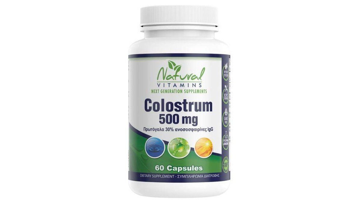 Natural Vitamins Colostrum 500 mg, Πρωτόγαλα 30% Ανοσοσφαιρίνες Lgg - 60Caps