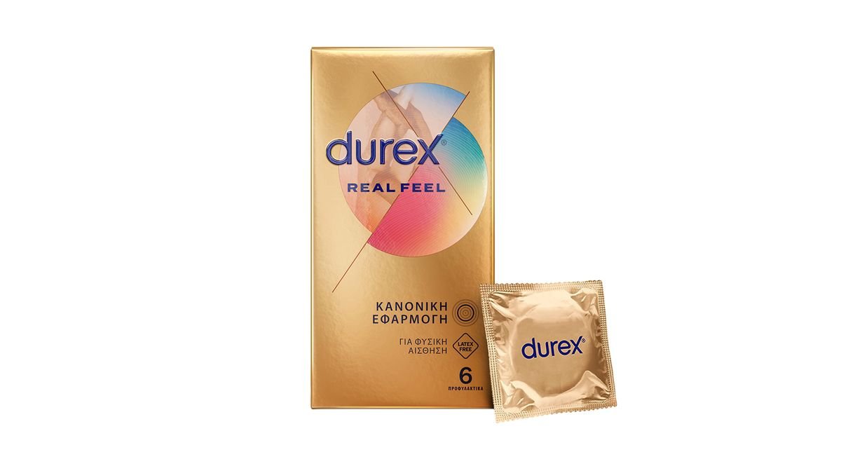 Durex Προφυλακτικά Πολύ Λεπτά Χωρίς Λάτεξ Real Feel Κανονική Εφαρμογή 6 τμχ