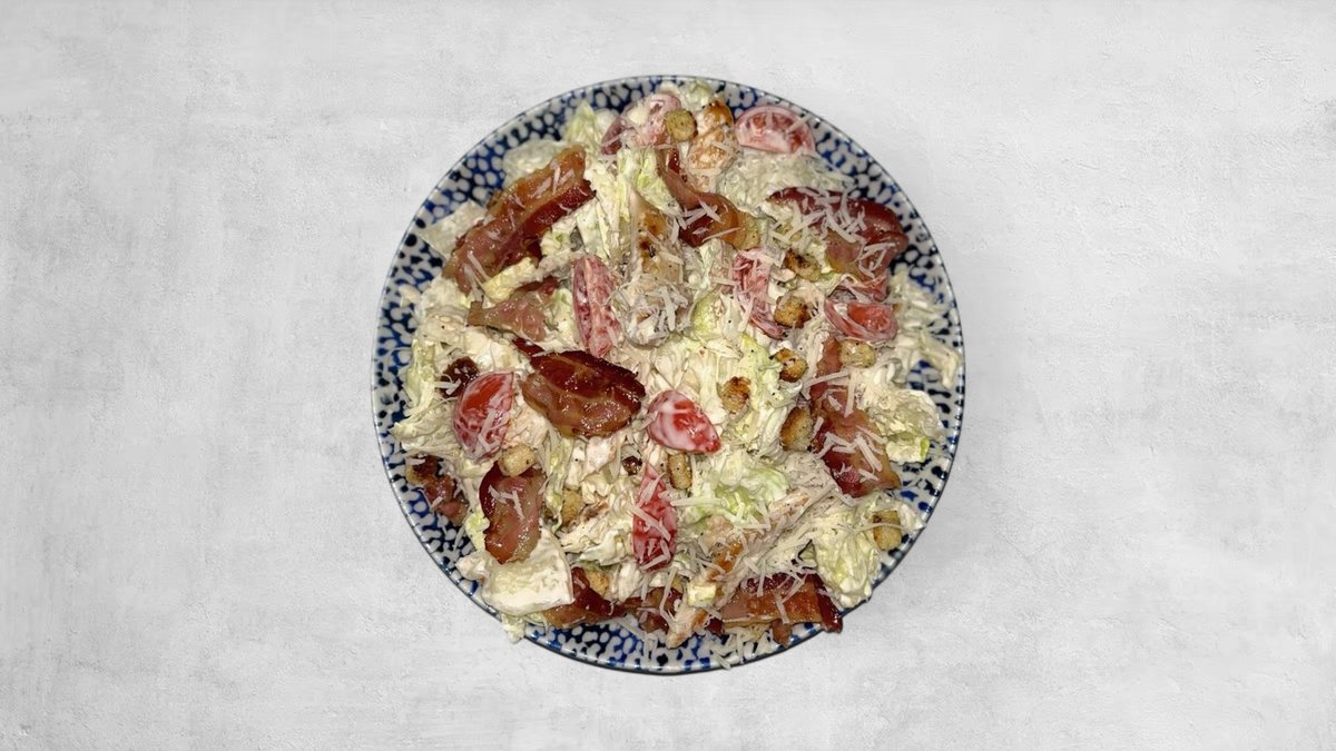 Grill piletina, hrskava slanina, ceri, ajzberg, cezar dresing, kackavalj, parmezan