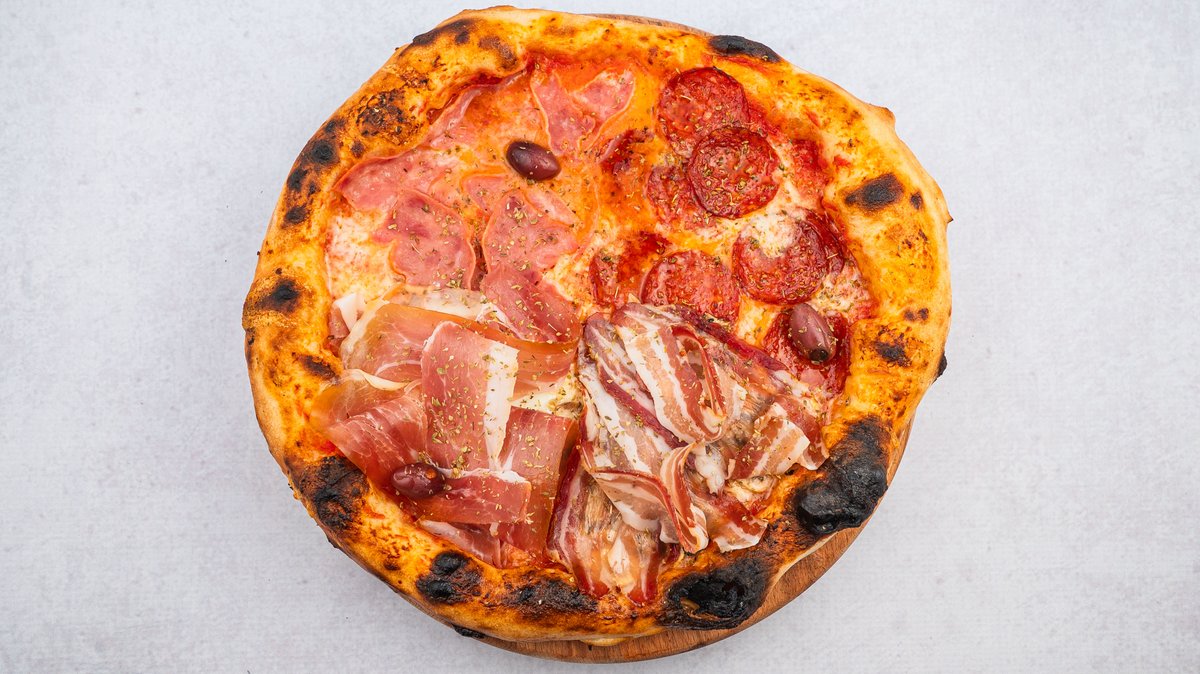 Pelat, kackavalj, šunka, kulen, slanina, pršuta, masline, origano