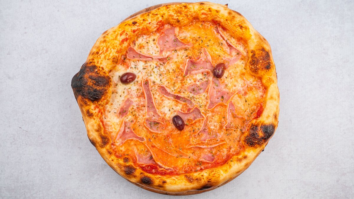 Pelat, kackavalj, šunka, origano, masline