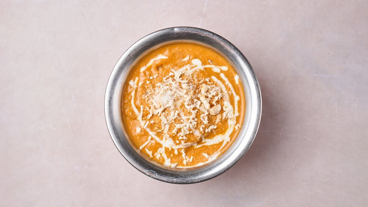 Yrtti-jogurtissa marinoitu tandoorissa grillattua kanaa ja tuorejuustoa tomaatti-cashew-kermakastikkeessa.