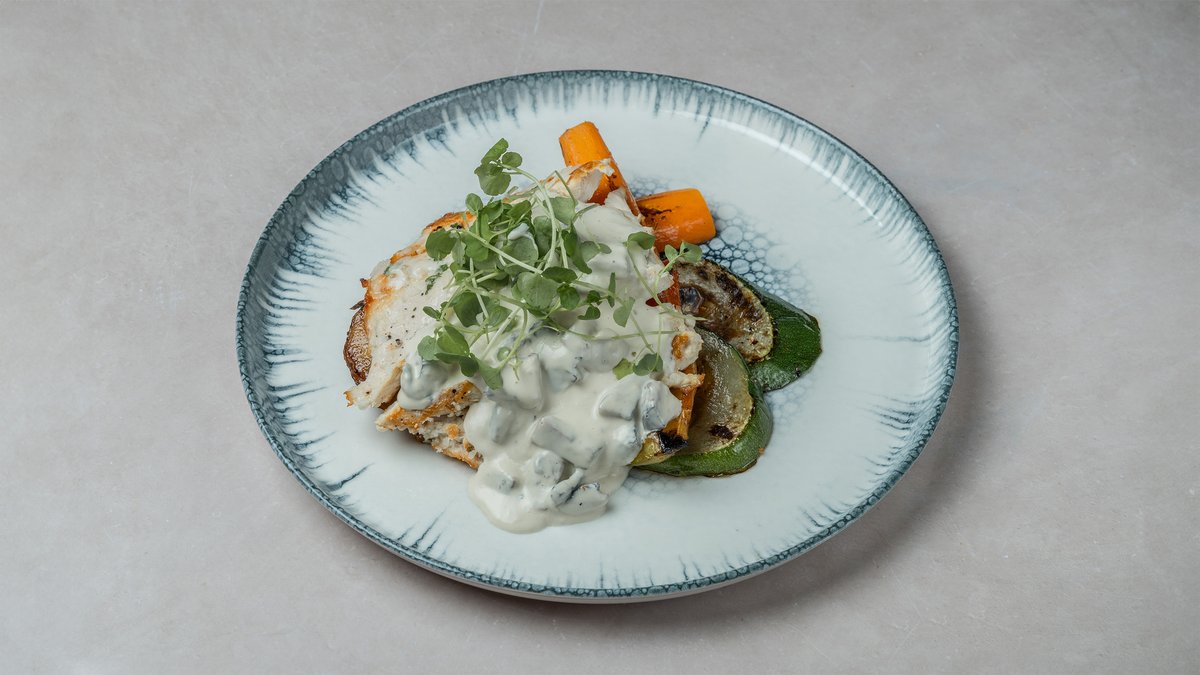 GRILLATTUA KANANRINTAFILEETÄ (160–180 G) HERKKUSIENIKASTIKKEELLA, TALON PERUNOITA JA KASVIKSIA