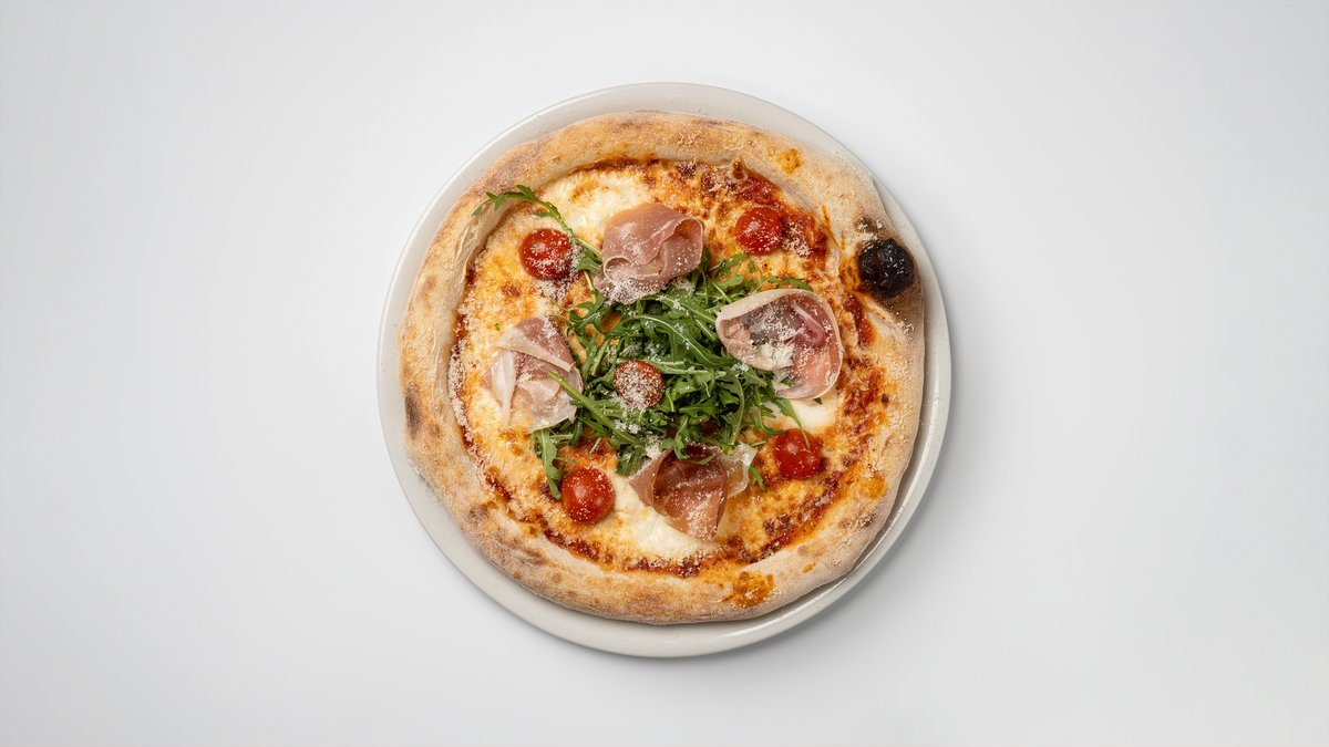 MOZZARELLAA, TOMAATTIKASTIKETTA, PARMANKINKKUA, KIRSIKKATOMAATTIA JA RUCOLAA