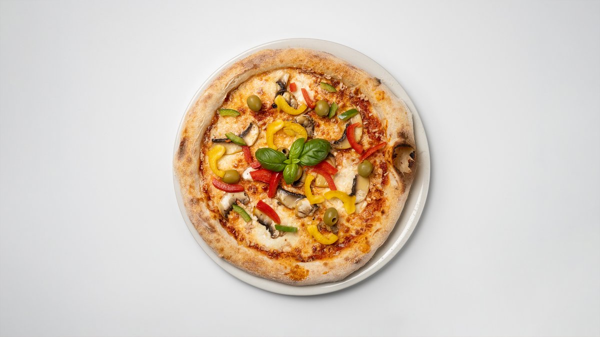 Mozzarella, tomaattikastike, paprika, herkkusieni ja oliivi