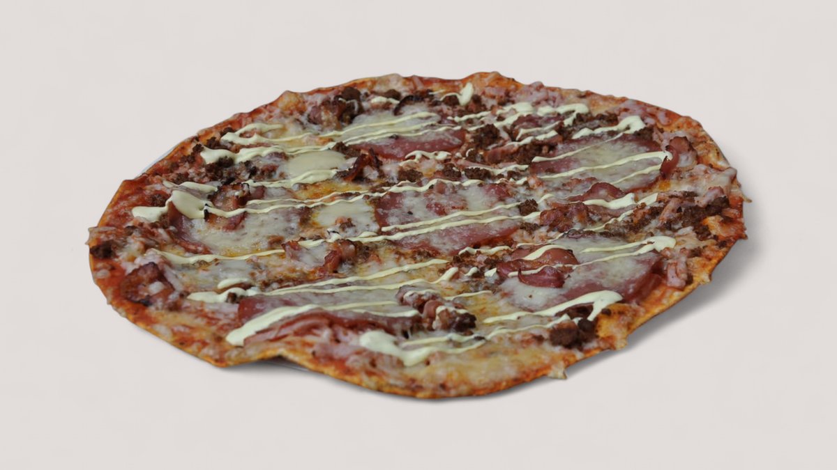 Pepperonesalamia, kinkkua, katkarapuja, sipulia, mozzarellajuustoa