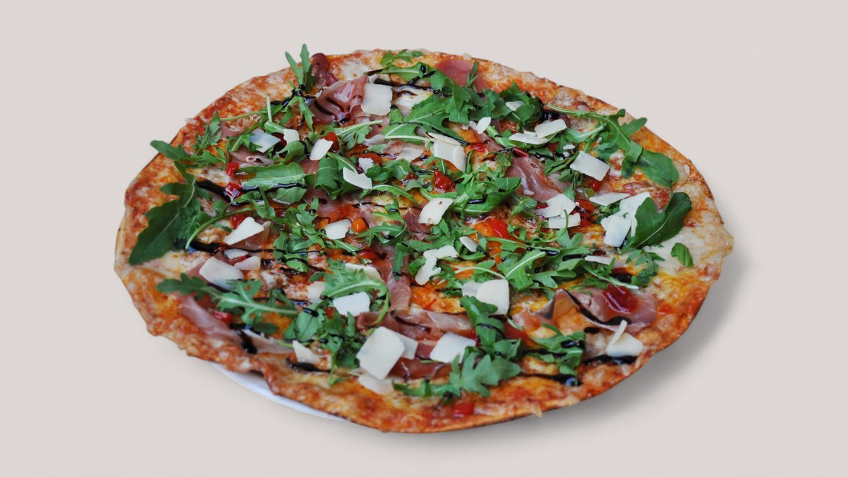pepperonia, pekonia, parmankinkkua, paholaisenhilloa, rucolaa, balsamicoa, parmesanlastua