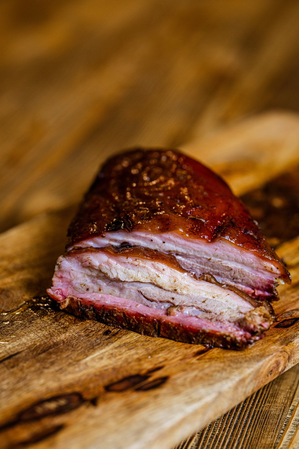 cc. 250g BBQ beef, coleslaw, mustard potatoes, pickled cucumbers, plum BBQ sauce