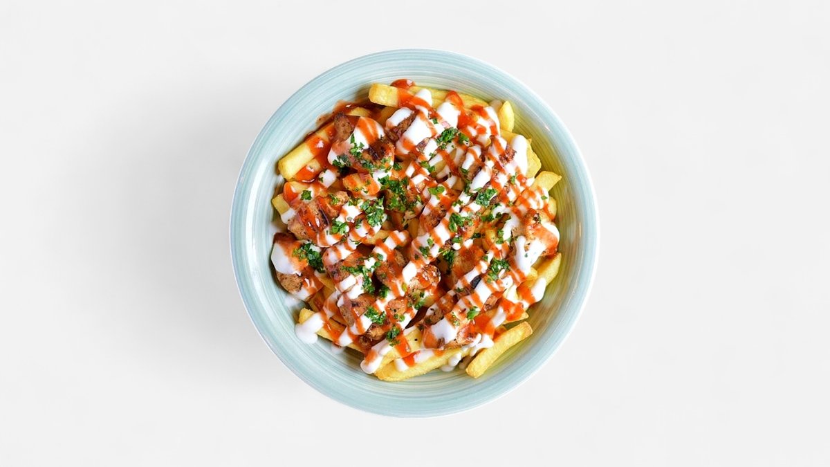 pileća šavarma sa pomfritom u činiji