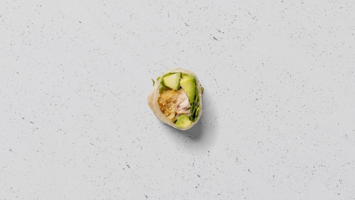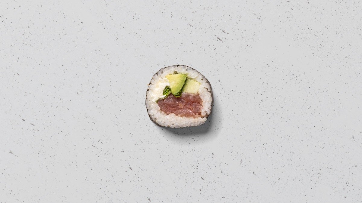 Tun, avocado, agurk, salat og cream cheese, rullet tang.