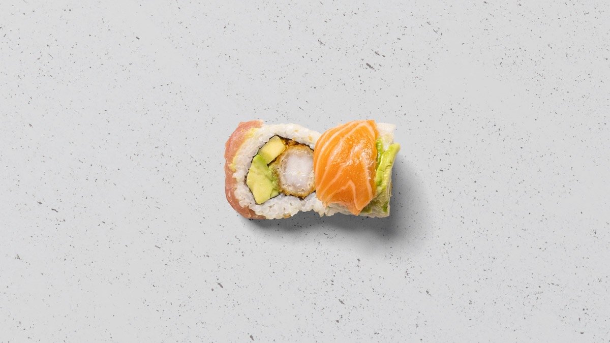 8 x Rainbow ebi dragon roll 8 x Grillet laks dragon roll 8 x Tun dragon roll