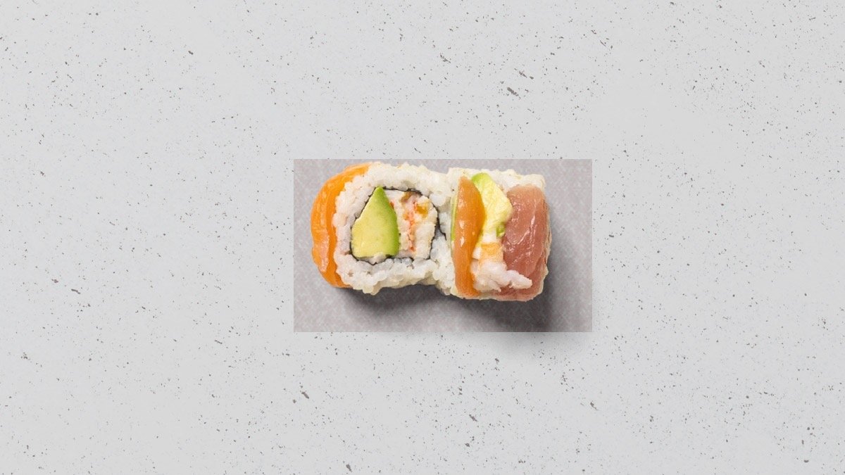 Nigiri: 2 x Nigiri laks 2 x Nigiri grillet laks Kaburamaki: 1 x Grillet Laks Dragon Roll 1 x Rainbow Ebi Dragon Roll Uramaki: 1 x Crispy Ebi Roll 1 x Valgfri Uramaki Roll Futomaki: 1 x California Roll 1 x Crispy Ebi Roll Hosomaki: 1 x Avocado Roll